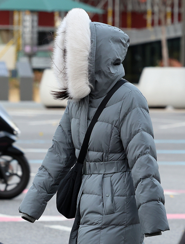 찬 공기가 북쪽에서 유입되면서 기온이 큰 폭으로 내려간 17일 오전 서울 종로구 세종대로사거리에서 두꺼운 겨울옷을 입은 시민들이 출근을 서두르고 있다.