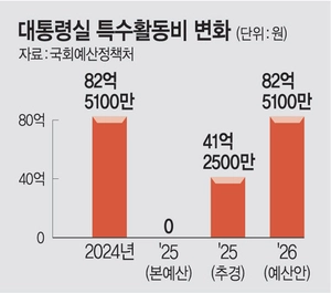 내년 정부 예산안에는 대통령실 특활비로 82억5100만 원이 책정됐다. 민주당이 야당이던 지난해 “불필요한 쌈짓돈”이라며 전액 삭감했을 당시 책정한 규모 그대로다. 민주당은 올해 2차 추가경정예산(추경)에서 대통령실 특활비를 애초 예산안 수준인 41억2500만 원(6개월분)으로 복원했다.