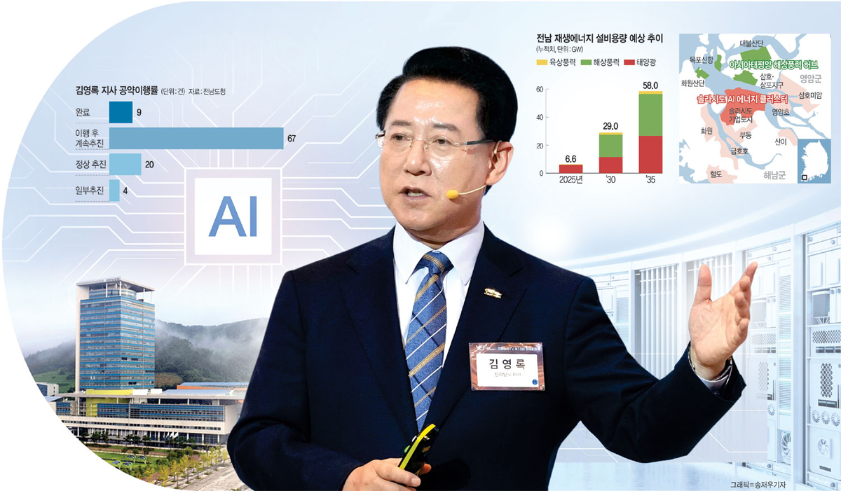 “에너지 대전환과 AI 등 첨단 전략산업을 지역 미래 비전으로 설정하고 선제적으로 대응해 왔다. 2019년 ‘블루이코노미 비전’을 선포하고 해상풍력과 RE100(재생에너지 100%) 산업단지, 데이터센터 기반을 착실히 구축해 왔다. 그 노력이 이제 결실을 맺고 있는 것이다. 오픈AI·SK그룹의 데이터센터와 국가 AI 컴퓨팅센터에 이어 최근 현대차그룹이 서남권 수소 AI시티 조성 추진계획을 발표했고, HD현대는 대불산단에 AI 기반 스마트조선소를 조성하겠다는 뜻을 밝혔다. 글로벌 기업들이 앞다퉈 투자를 선언하면서 전남이 대한민국 신산업의 중심축으로 급부상하고 있다. AI데이터센터를 중심으로 반도체공장, 첨단산업이 들어서고 청년들에게 양질의 일자리와 새로운 기회가 많이 생길 것이다.”