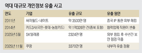 지난달 30일 피해 사실이 드러난 쿠팡의 고객정보 유출 사태는 올해 최대 규모 개인정보 유출 사태이자, 2011년 SK컴즈(싸이월드·네이트) 사태 이후 14년 만에 가장 최악의 사건으로 기록될 전망이다.