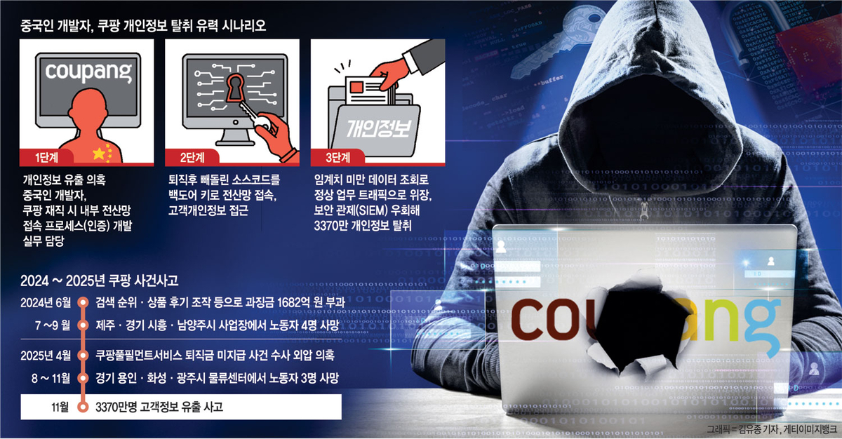 쿠팡이 외부 보안에만 지나치게 치중하면서, 정작 내부 관리에는 허술했던 게 아니냐는 지적도 나온다. 이날 직장인 온라인 커뮤니티 블라인드에는 한 쿠팡 직원이 “개발자 인력 절반 이상이 중국인”이라는 내용의 게시글을 게재했다. 이 직원은 “신규 입사자들을 소개하면 80%가 중국이고 나머지가 인도, 한국인”이라고 썼다. 김 교수는 “내부 직원들이 개인정보를 관리하고 모니터링하는 ‘관리적 보안’이 얼마나 잘 작동했는지가 중요하다”고 지적했다.