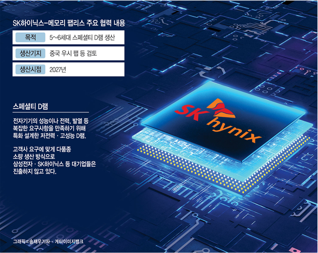 4일 반도체 업계에 따르면 SK하이닉스는 국내 한 메모리 팹리스 업체와 협력해 이르면 오는 2027년부터 ‘스페셜티 D램’ 생산을 결정하고 세부 품목과 물량을 논의 중인 것으로 파악됐다. 스페셜티 D램이란 인공지능(AI) 서버와 스마트폰·PC 등에 주로 쓰이는 범용 D램의 반대 개념으로, 특정 용도나 기능에 특화된 메모리를 말한다. 해당 메모리 팹리스 업체는 모바일과 사물인터넷 기기에 들어가는 저전력 D램(LPDDR)과 멀티칩패키지(MCP) 등을 주력으로 설계하는 곳으로 알려졌다.