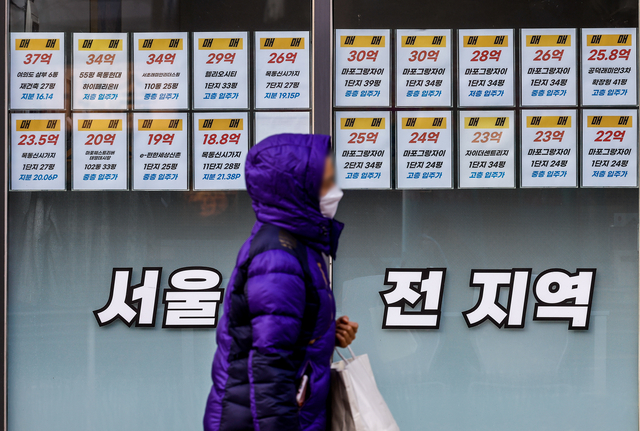 7일 아파트 매물 정보들이 게재된 서울 시내 한 부동산중개업소 앞을 시민이 지나가고 있다. 한국부동산원이 발표한 12월 첫째 주(1일 기준) 주간 아파트 가격에 따르면 서울지역 아파트 평균 매매가격은 전주 대비 0.17% 올라 44주 연속 상승세를 이어갔다.