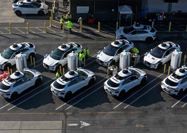 미국 자율주행기업 웨이모가 스쿨버스 추월 문제로 로보택시 소프트웨어 리콜을 실시한다고 밝힌 가운데 8일 캘리포니아주 샌프란시스코 내 생산시설에 차량들이 주차돼 있다.
