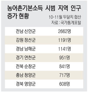 정부가 내년부터 지역 소멸 위기 지역 10곳의 주민들에게 매월 기본소득을 지급하는 ‘농어촌 기본소득’을 실시하는 가운데 최근 두어 달 사이 이들 지역에서 인구가 수백 명에서 수천 명씩 이례적으로 급증해 그 배경에 이목이 집중되고 있다.