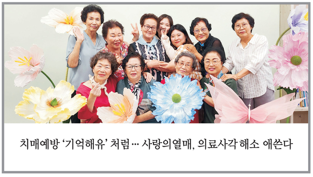 17일 문화일보 취재 결과, 지난해 우리나라 국민 의료비가 국내총생산(GDP)의 8.4% 수준인 약 213조 원을 넘어섰다. 1970년 국민 의료비 735억 원과 비교해 약 2900배 늘어난 규모다. 국민 1인당 의료비도 412만1000원으로, 매년 400만 원 이상을 의료비로 쓰고 있는 것으로 나타났다. 이처럼 의료비 지출액이 크게 늘어나다 보니, 저소득·소외계층 사이에선 비용 부담으로 희귀·난치병 치료를 포기하는 사례가 속출하고 있는 실정이다. 특히 고령화 사회로 접어들면서 노인 의료비 증가세가 눈에 띈다. 지난해 기준으로 65세 이상 노인의 국민건강보험 진료비는 전체 진료비의 44.9%를 차지하며 절반에 육박하고 있다. 이에 따라 사랑의열매도 의료 사각지대 발생을 막기 위해 힘쓰고 있다. 사랑의열매가 대표적으로 운영하는 노인 돌봄 프로그램으로 충청북도노인종합복지관과 협력해서 진행하는 ‘치매예방 프로젝트 기억해유(You)’(사진)가 있다. 이 프로그램은 충북광역치매센터의 연구를 바탕으로 노인들에게 디지털 인지훈련을 시키고, 정서·건강·환경·공예 등의 다양한 활동을 통해 치매를 예방하도록 설계됐다. 정확한 치매 예방 정보를 제공, 노인들이 건강한 노후 생활을 준비하도록 돕고 있다.
