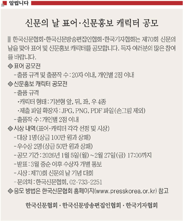 ◇응모 방법은 한국신문협회 홈페이지(www.presskorea.or.kr) 참고