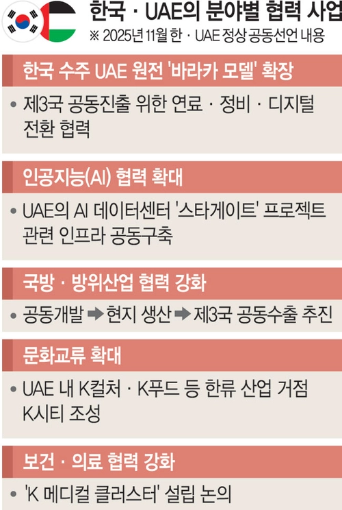 앞서 양국은 지난해 11월 UAE 아부다비에서 정상회담을 갖고 ‘100년 동행을 위한 새로운 도약’이라는 제목의 공동선언문을 발표했다. 방산·AI·에너지 분야 협력 확대를 통해 특별 전략적 동반자 관계를 강화하는 내용이 담겼다.