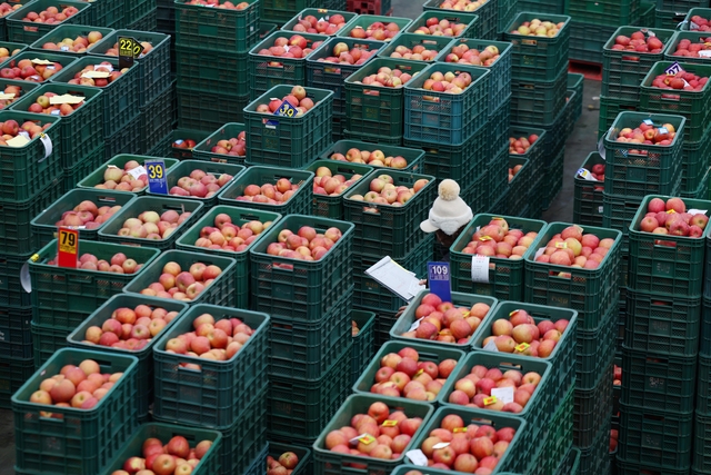 20일 경북 안동시 안동농협 농산물공판장에서 저장 사과 경매가 열리고 있다. 한국은행의 지난 12월 생산자물가에서 사과는 세부품목 중 가장 높은 19.8%(전월대비)의 상승률을 기록했다.