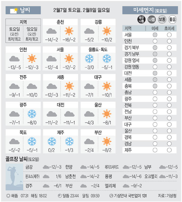 [날씨이야기] 2월7일 토요일, 2월8일 일요일