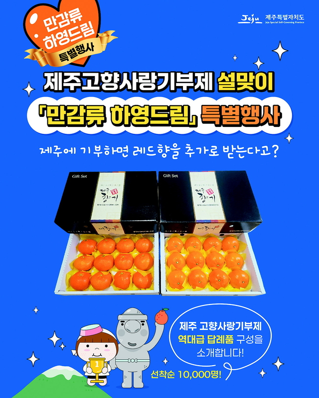 도는 남방큰돌고래 보호, 곶자왈 보존, 제주어 계승 등 17개 사업에 기부금을 투입해 ‘가치 중심 기부’ 모델을 이어가고 있다. 지정기부금의 목표액은 모집 70여 일 만에 달성될 만큼 전국 기부자의 신뢰도가 높다. 또한 10만 원 이상 기부자에게 공영관광지 무료입장, 렌터카·숙박 할인 등 제주도민 수준의 혜택을 제공하는 ‘탐나는 제주패스’가 큰 호응을 얻고 있다.