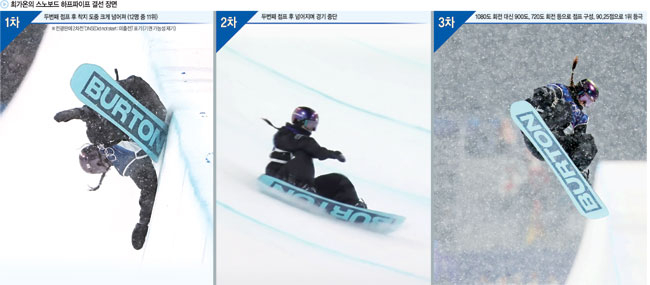 밀라노·코르티나동계올림픽에서 최가온보다 극적으로 금메달을 차지한 선수는 없었다. 최가온은 1차 시기 때 두 번째 점프를 시도하다가 크게 넘어졌다. 슬로프를 데굴데굴 굴렀기에 머리와 다리 등 온몸에 부상이 우려됐다. 최가온은 한동안 일어서지 못했고, 의료진이 슬로프 안으로 진입해 최가온의 상태를 살폈다.