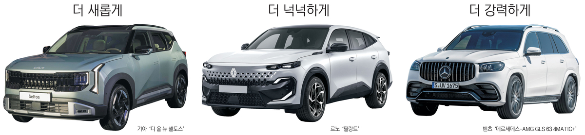 완성차 업체들은 SUV 라인업을 강화하고 있다. 기아는 중형 SUV 쏘렌토의 연식변경 모델 ‘더 2026 쏘렌토’를 판매하고 있다. 신형 쏘렌토의 모든 트림에는 차량 전방 카메라의 작동 영역 등을 보강한 ‘차로 유지 보조 2’를 비롯한 편의사양을 기본으로 적용해 안전성을 강화했다는 평가를 받고 있다. 쏘렌토는 지난해 국내에서 10만2대가 팔리며 2002년 출시 이후 처음으로 ‘10만 대 클럽’(연간 10만 대 판매)에 입성했다. SUV가 10만 대 클럽에 이름을 올린 것은 쏘렌토가 처음이다.